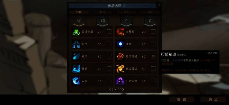 开局60传承点(要是速通主线就带着,要往后拖到500天后的话,狩猎精通换成遁入阴影+雾遁)遁入阴影升3.雾遁升1就行
