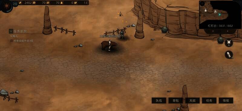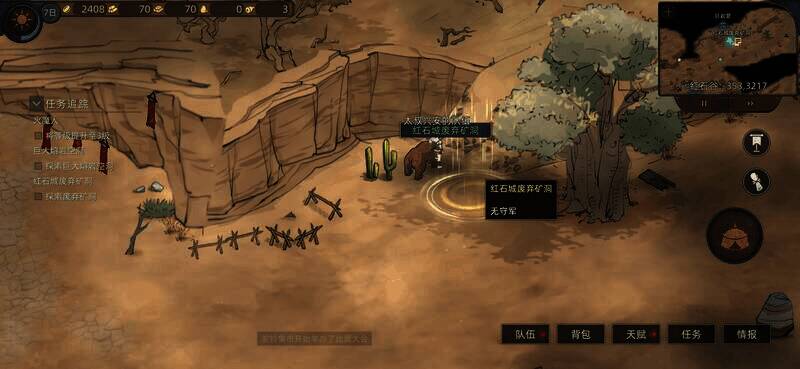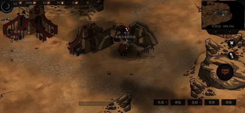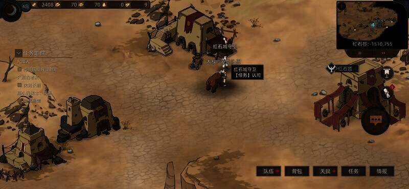 红石城左右两个任务,进入红石城,进下酒馆(有人之后可以在情报里看所在位置)