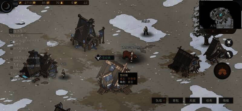 途径雪岭镇,进入城中,进入酒馆(曲玉刚巧在,但是没法招,对下话,方便后面追踪),接俩任务继续前行