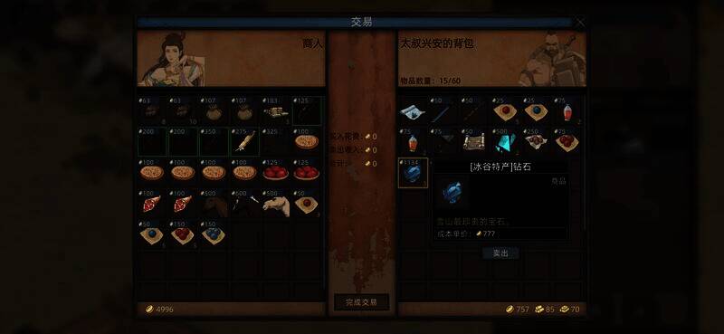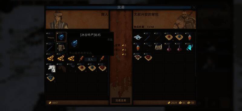到冰谷,进城买东西,(买临时啥资格一百来乌塔),买入钻石卖出蔷薇秘药(狼皮也顺带买一下,我又忘了)要留一百乌塔购买临时通商!!!