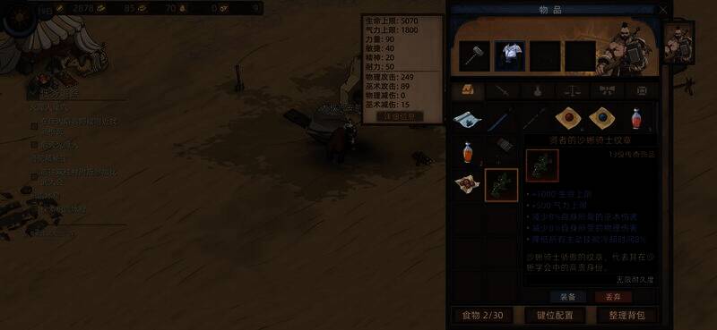 现在耐力不够穿不上,看下背包里有没有耐力秘药吃一下,还不够就等等(后面可以强化个神盾)