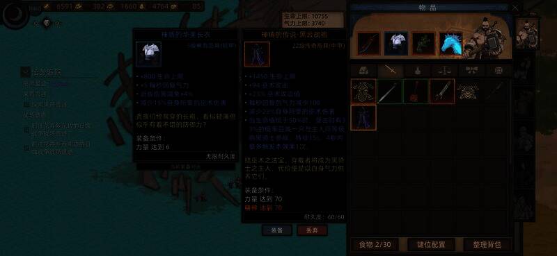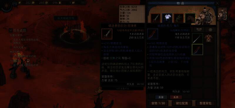 两个护甲,左面的搭配远古三叉戟,右面的强化——神盾,搭配名刃鬼烈(流血对自己就不咋疼了)