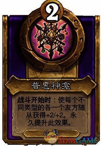 效果:战斗开始时,使每个不同类型的各一个友方随从获得+2/+2。永久提升此效果。