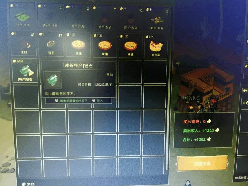 【雪山】 熊皮,钻石 ,钻石还是很赚钱的,钻石卖到沙漠可以赚一笔