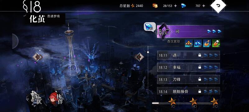 第一能打崩坏就不要打普通。一个经验80一个才25-30。差了差不多3倍,不要想拿满星。过去了再说,把等级提上去。战斗力拉上去在来拿满星的奖励。