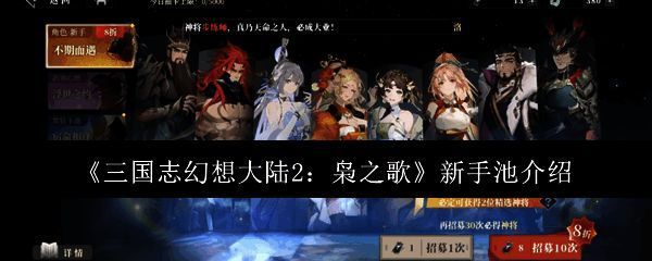 三国志幻想大陆2枭之歌新手池怎么样?其实大家都应该了解一下,这是新手玩家们开启游戏征程时首推的选择,就目前的游戏设定而言,这是一个专门为新手量身打造的打折卡池,其概率优势是很大的。