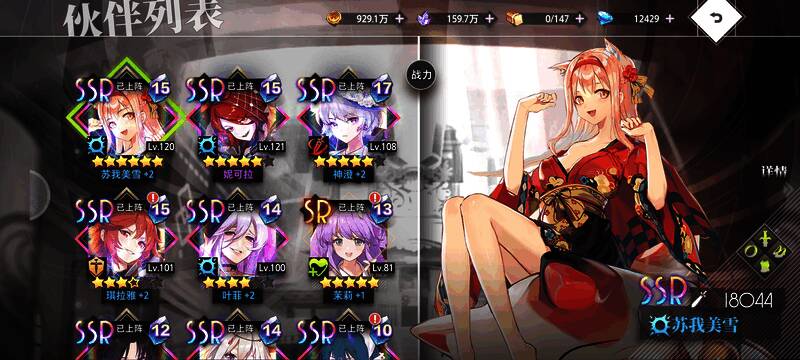 SSR装备,部分强势装备可以一直升,如愿望法杖,鲜血踏舞鞋,红酒杯,樱降,这类同名装备建议留3套本体给主力,其余角色装备随便穿,就当挂件