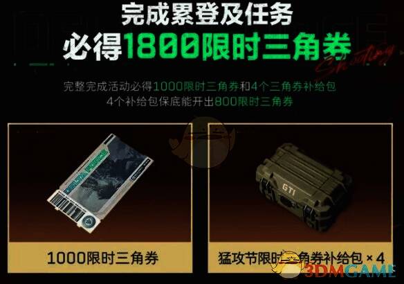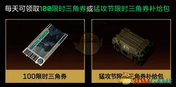 2、玩家在这段时间内每天登录游戏完成三个任务就可以获取100限时三角券或是限时三角券补给包。