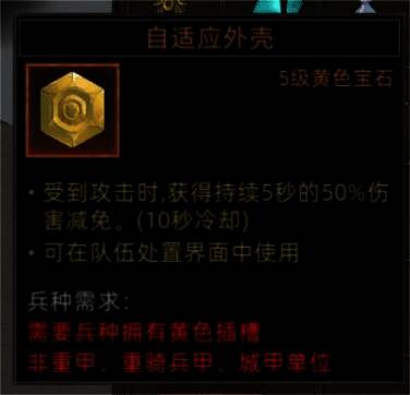自适应外壳(5级兵种宝石,极品兵种宝石,cd10秒,持续5秒的50%伤害减免,不管是肉盾还是脆皮都需要,保命神石)。