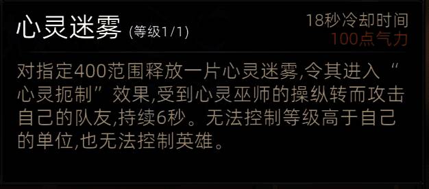 缺点:心灵迷雾技能在控制敌方攻击队友时,仍会被己方攻击。在敌方较弱时,收益不高。在敌方较强时,收益较高。