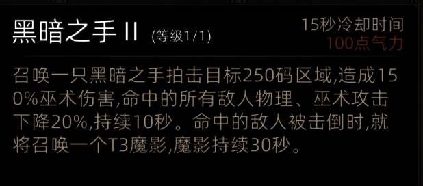 缺点:黑暗之手范围较有限