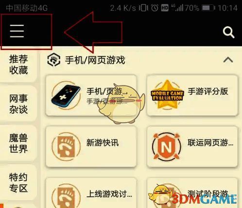 1、点击打开nga后,选择左上角的横杠,打开侧边菜单栏。