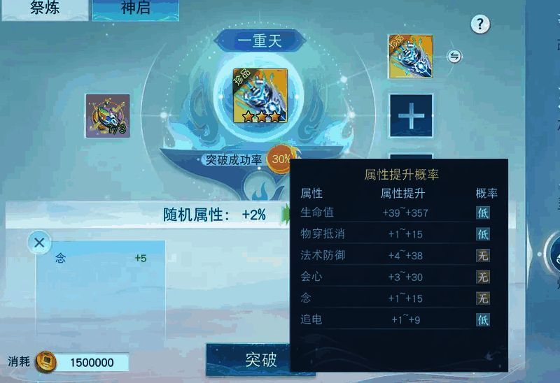 当前装备神启开放的最高等级为【三重天】,当装备达到三重天阶段后,少侠将无法再对当前装备进行突破。