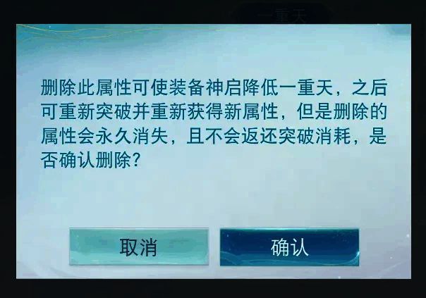 需要提醒各位少侠,装备神启等级回退将不会返还突破消耗,且删除的属性会永久消失,因此少侠在进行属性删除操作时务必谨慎考虑!但少侠们也可以通过降级和重新突破,从而得到自己需要的目标属性~