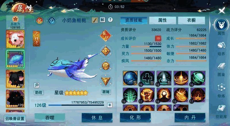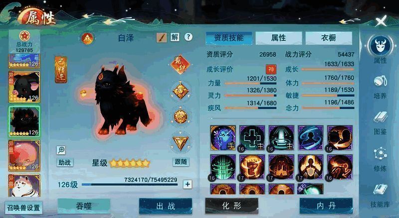 我比较常用的召唤兽是白泽、灵鲲和天狗。白泽主要是看中它的免控效果,在战场上算是保命技能了;灵鲲通常是回血,可以为我增加续航;天狗可以加属性,进一步提升我的输出,打出更高的伤害,对于一个输出职业来讲这三方面应该是很重要的了。