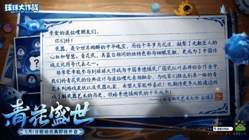 素胚勾勒出青花笔锋浓转淡,瓶身描绘的牡丹一如你初妆……青花瓷,是中国瓷器的主流品种之一,从唐宋开始就初见峥嵘,至明朝已成为瓷器主流。伴随着五一假期的临近,《球球大作战》邂逅中国景德镇瓷厂,将最能代表瓷都景德镇瓷器工艺的青花瓷带到波拉哩星,让每一个球宝都能在天青色浓淡变化中,感受古瓷之美。
