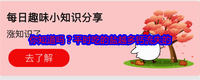 1、题目:你知道吗?平时吃的盐越多,钙流失的