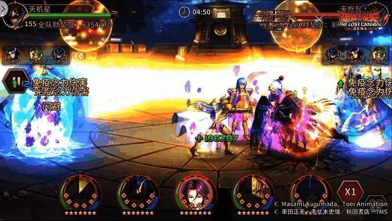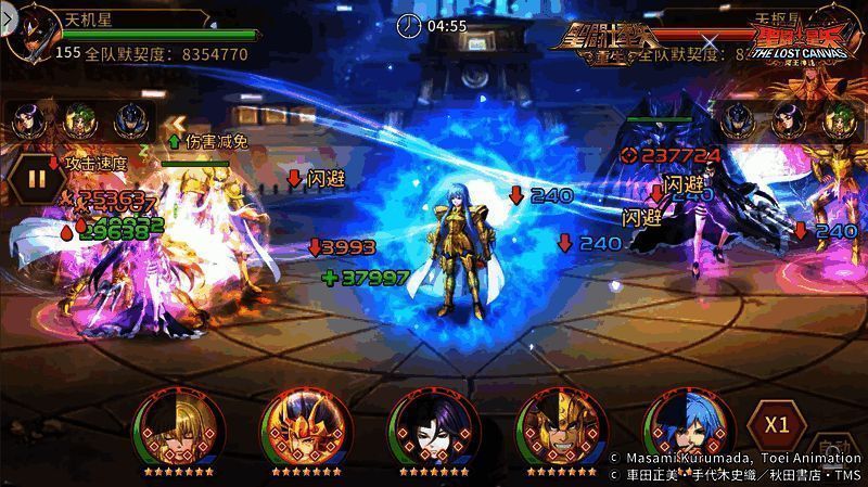 4分55秒,金牛座·哈斯加特释放“巨星降临”,对敌方全体造成强制击飞效果,在被削减240点觉醒值的同时,因击飞效果从空中落地后敌方每名角色受到了86W的真实伤害。