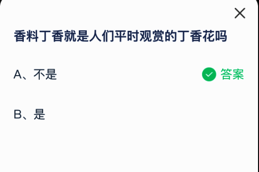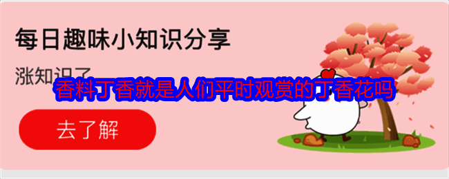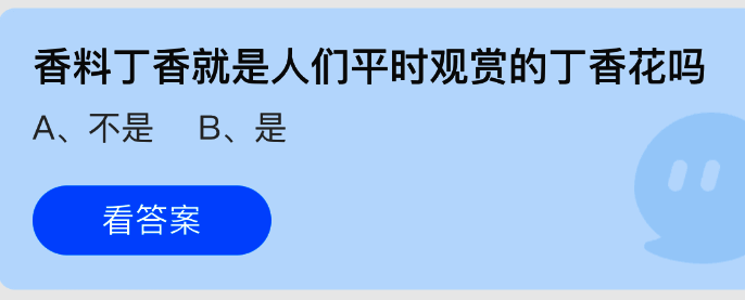 香料丁香就是人们平时观赏的丁香花吗?这是支付宝蚂蚁庄园每日题目,蚂蚁庄园完成每日最新的题目可以获得180g饲料。我们可以用饲料喂养小鸡。支付宝蚂蚁庄园2025年2月25日题目答案是【不是】。香料丁香和观赏丁香是两种不同的植物,它们在植物分类、用途和外观上都有显著差异。