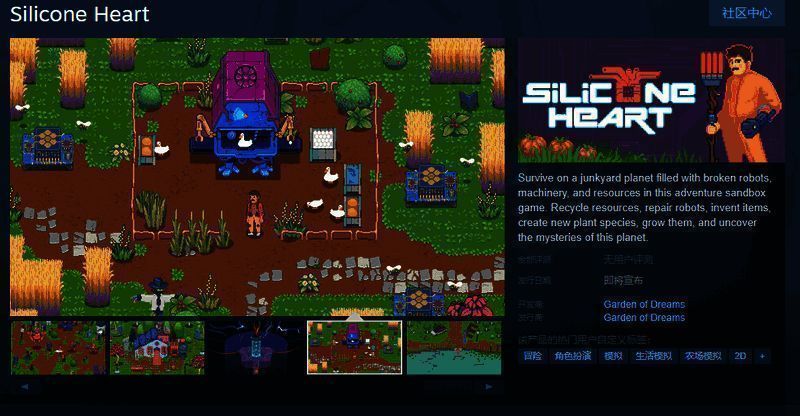 今日(12月25日),冒险沙盒游戏《Silicone Heart》Steam页面上线,游戏发售日待定,游戏支持简体中文,感兴趣的玩家可以点击此处进入商店页面。