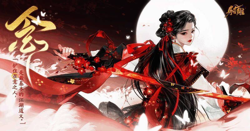 穆念慈在游戏之中的定位是近战外功绝品侠侍,红衣柳叶刀的飒爽形象也与角色本身的战斗定位相符,角色的红梅元素除了在美术上有所体现,连技能招式之中的描述都紧密贴合。