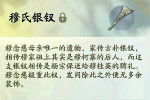 又譬如穆念慈发上的穆氏银钗,来自于家传,传说中是杨宗保送给穆桂英的聘礼,因此穆念慈极为珍视,是她发间唯一的装饰。