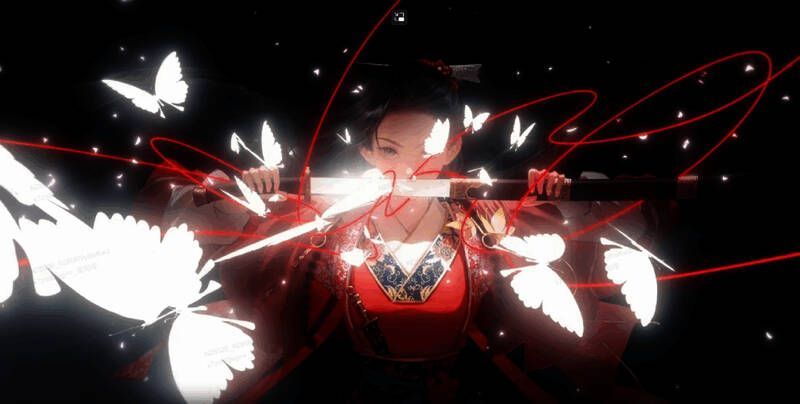 而在整体的画风上,也充分展现出了网易本身强大的美术力,写实水墨风格定下了整支PV的主基调,红线、红花与金蝶作为点缀,最终以穆念慈的拔刀动作结尾,女侠之气彰显无遗。