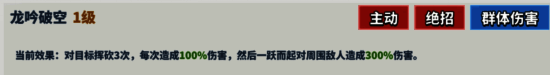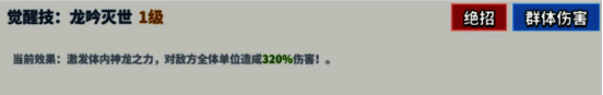 描述:激发体内神龙之力,对敌方全体单位造成320%伤害。