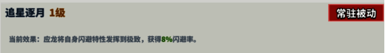 描述:应龙将自身闪避特性发挥到极致,获得8%闪避率。