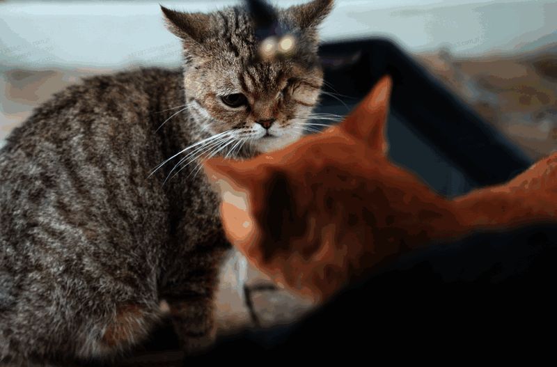可能由于长期独自流浪的缘故,在助宠院内的它也显得唯唯诺诺,经常被其他猫猫欺负,就连开饭的时候它也是乖乖地看着别人先吃。也不知道是因为视力不好导致它不爱动,还是因为它的性格本就温和?