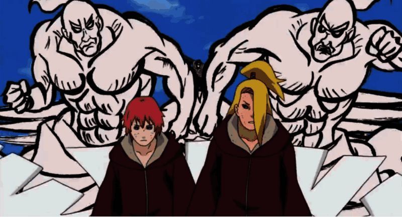 佐井能使用超神伪画,绘制出风神与雷神对敌人进行攻击,此招数曾一击将秽土转生的蝎与迪达拉击飞。