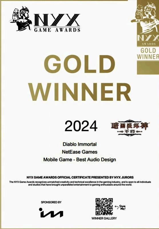 创新无止境,超越极限!《暗黑破坏神:不朽》上线以来,凭借优秀的素质和良好的游戏体验受到业界内外无数人士的关注,并在玩家们的陪伴下获得多项知名奖项。2024年尚未过半,《暗黑破坏神:不朽》再次喜提游戏音频网络协会大奖(Game Audio Network Guild Awards,简称G.A.N.G.)休闲/社交游戏“最佳音频奖”奖项,并成功拿下NYX Best Audio Design 金奖和全球音乐奖(global music awards)的铜奖!