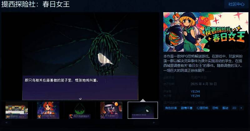 今日(3月7日),RPG恐怖解谜游戏《提西探险社:春日女王》Steam页面公布,预计于2025年4月30日发售,游戏支持简体中文,感兴趣的玩家可以点击此处进入商店页面。