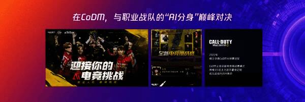 2022年,《使命召唤手游》上线了5v5电竞挑战赛模式。当年获得职业大师赛冠军的Q9战队,被量身定制为游戏内的AI角色,玩家可以组队挑战基于职业选手数据训练出的“AI分身”战队,体验电竞赛场上巅峰对决的竞技乐趣。