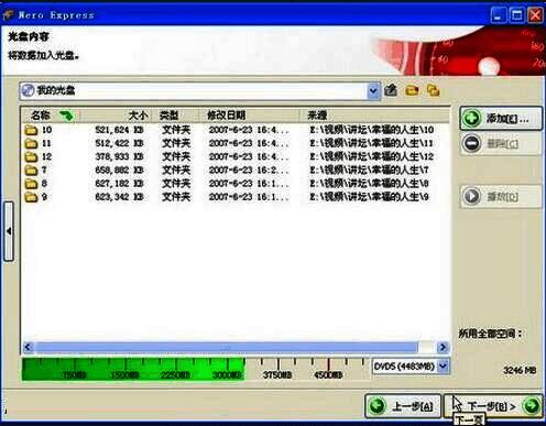 返回“光盘内容”对话框,单击“下一步”按钮,“光盘内容”对话框