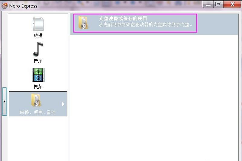 首先,运行Nero Express程序,选择Express刻录系统盘的功能“影像、项目、副本”