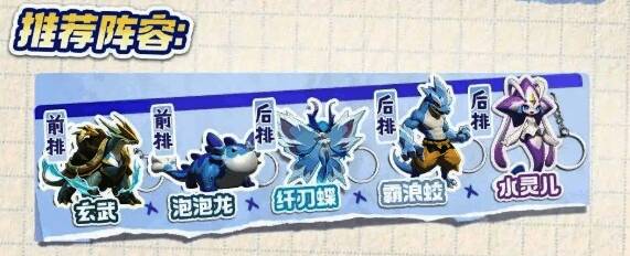 基于这样的角色特点,一套较为合理的水系阵容就成功组合 了,前排可以安排玄武和电虾,因为电虾同样具备出色的防御能力,能够和玄武一起筑起防线,它们就像两道前排盾牌阻挡敌方的进攻,后排则可以放置螳螂,螳螂的作用是能够巧妙地切入对方的后排,对敌方的后排输出单位造成输出,同时还能吸引敌方的火力,为己方的前排减轻压力,而辅助位置当然就是水灵儿啦,它通过提高队友的攻速和增加能量,让整个队伍的进攻节奏更加流畅,如果攻速足够快,能量积累也够快的话,那么大招就可以频繁地使用。