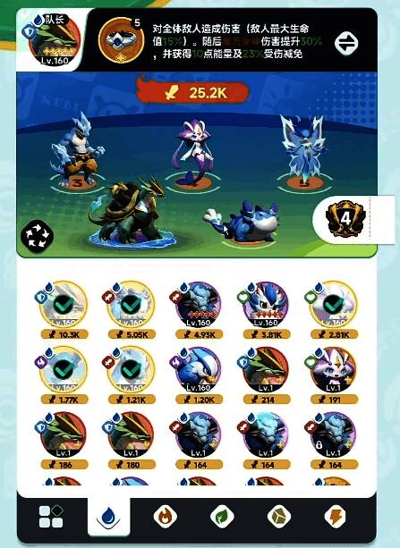 第二位泡泡龙,它则是一位防御性战士,既能在前排承受伤害,又能在关键时刻给予敌人有力的反击,而水灵儿,它的角色定位是辅助,能够在战斗中为队友提供各种增益效果,比如提高攻速和增加能量等,在这里建议大家将水灵儿作为队长,因为这样可以快速获取能量,要知道能量可是释放必杀技的前提,有了充足的能量,队伍在战斗中就能更频繁地释放出强力的必杀技,从而占据更大的优势。