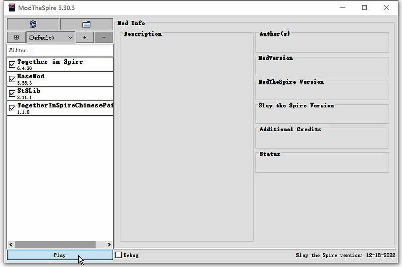 启动的时候,需要把4个mod都打钩,点Play启动。