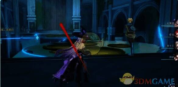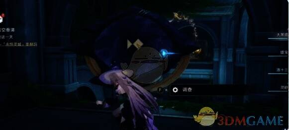 4、在左手边找到机关并点击调查,按照图中提示完成解密,到达对面。