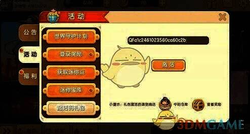 ③ 点击图标输入激活码就能够兑换奖励啦。