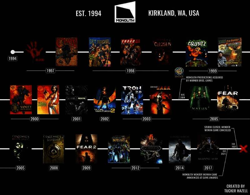 因为如果你去看上述经典游戏的制作名单,你会发现当初的原创团队早就没人留在Monolith了。即便是他们最后一款大作《中土世界:魔多阴影》的核心成员,也已经在几年前跳槽去了其他公司。