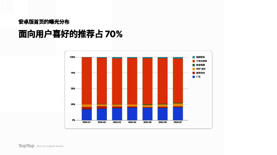 此外,TapTap 安卓版首页,目前有 70% 的曝光量,是完全面向用户的喜好去曝光的。