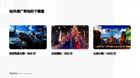 当 TapTap 出现一款新的、有全网吸量潜力的独家游戏,我们有动力也有能力,帮助这款游戏进行全网推广分发。TapTap 的这个能力,对于绝大多数中小开发者来说,是有很强大吸引力的。