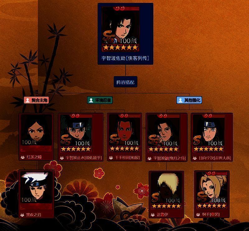1、结合宇智波佐助[侠客列传]的技能特点,一图流搭配推荐: