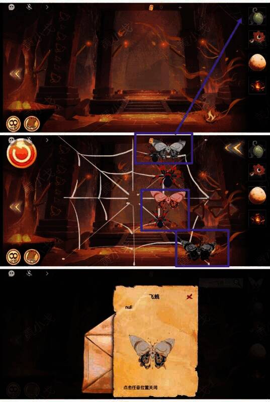 4.点击蛛网,完成推飞蛾小游戏(把飞蛾推到蜘蛛上);获得【飞蛾】