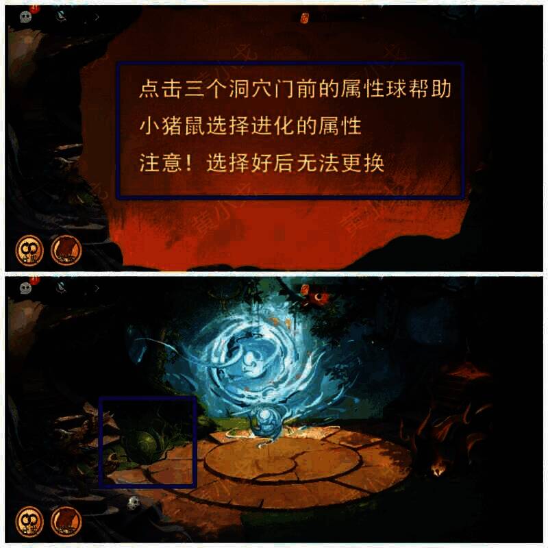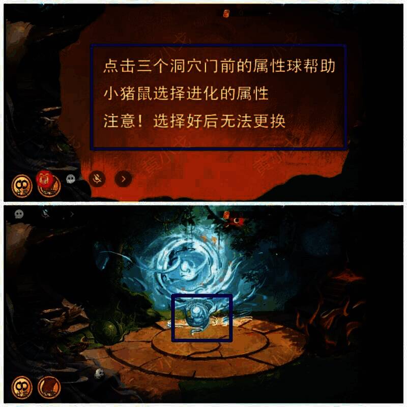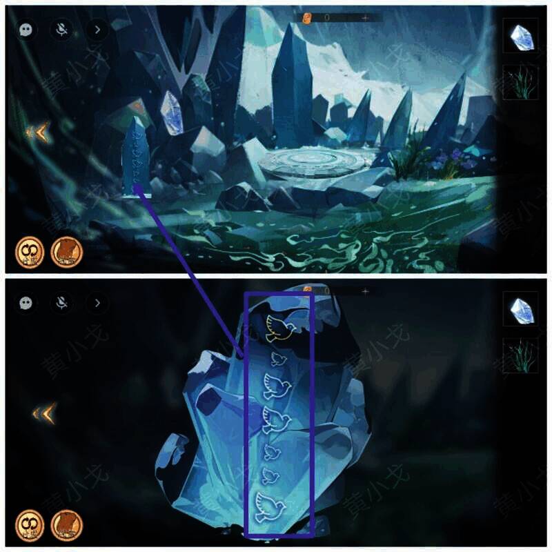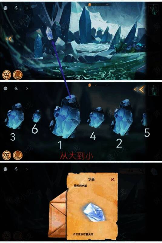 4.点击查看蓝色水晶(注意水晶上的鸟图案:从上到下-大小大大小小大)