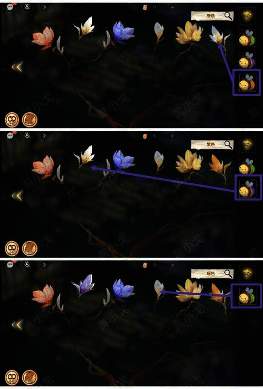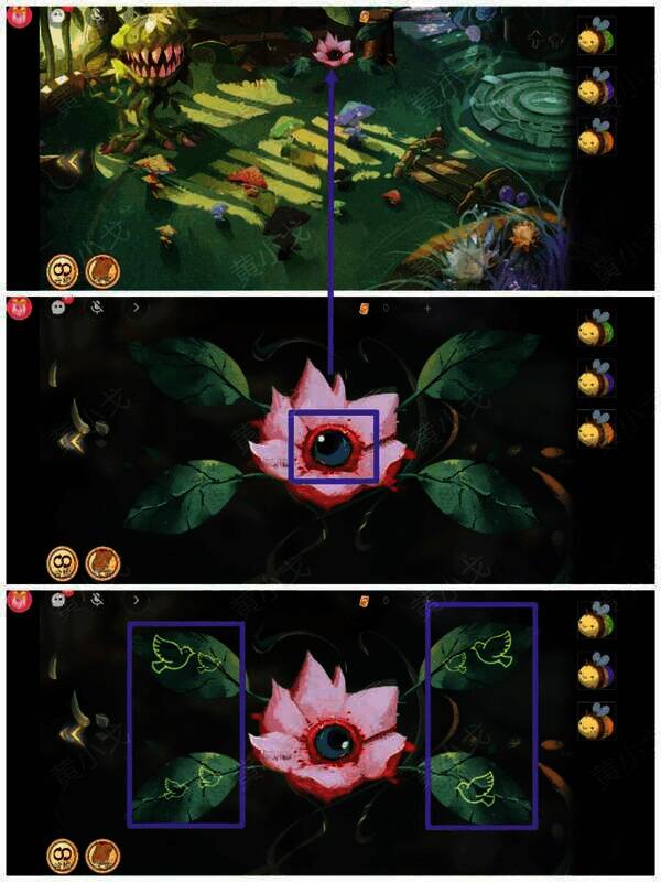 6.点击迁瞳花的眼睛,叶子上出现鸟图案(注意鸟图案的顺序:从上到下,从左到右-大小大大小小大)