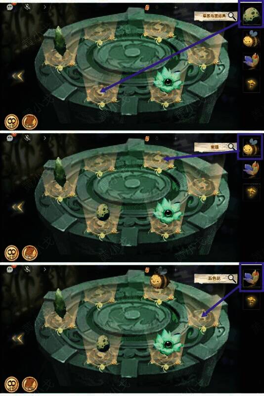 13.点击祭台,放上【草晶石】、【草系眼球植物道具】、【草系鸟蛋道具】、【蜜蜂】、【五色花】和【金色蘑菇】
