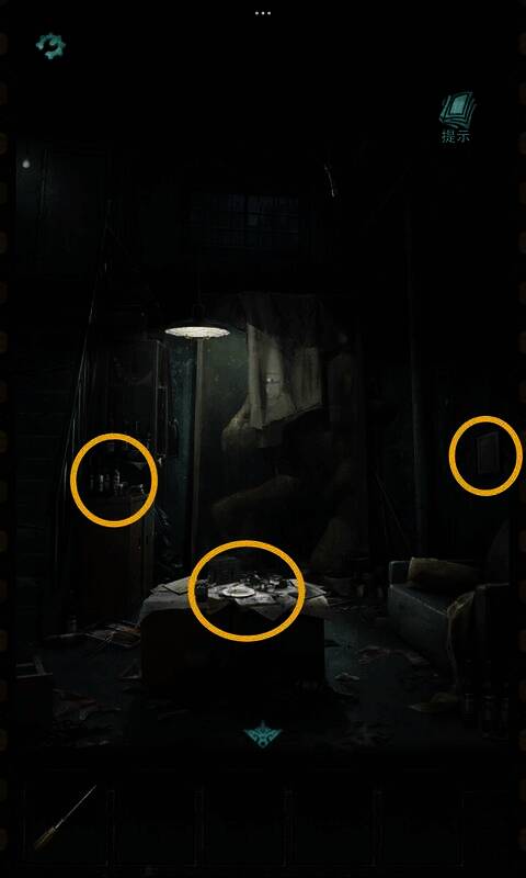 点击左侧桌子,向上掀开桌帘,打开抽屉,用铜钥匙打开铁盒获得【金条】,把金条交给山神像,衣柜右侧挂画向左移查看照片获得线索ADCⅠ、1=B,根据ABCDEFGⅠ Ⅱ Ⅲ Ⅳ Ⅴ的顺序来推算,保险箱密码是0328,打开保险箱点击文件